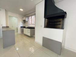 - Cozinha americana com móveis sob medida, bancada e churrasqueira