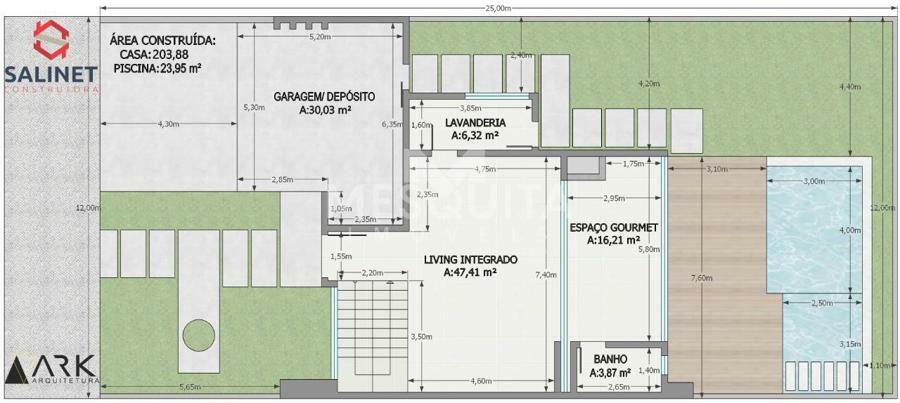 Área Total do Terreno 300,00m² : 12,00m de largura X 25,00m de comprimento.