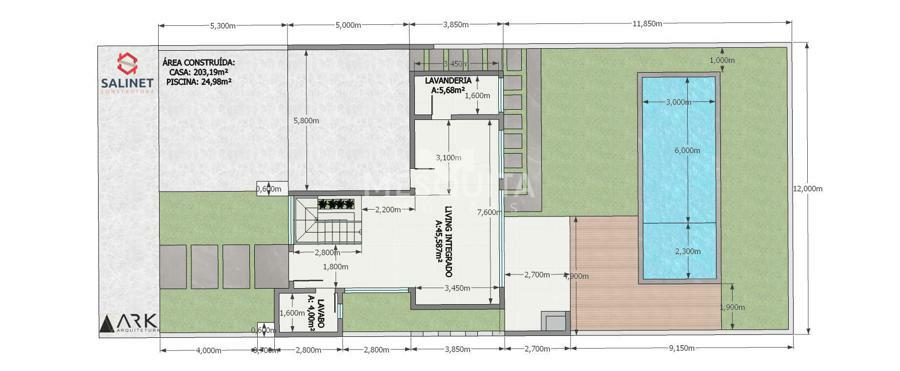 Área Total do Terreno 312,00m² : 12,00m de largura X 26,00m de comprimento.